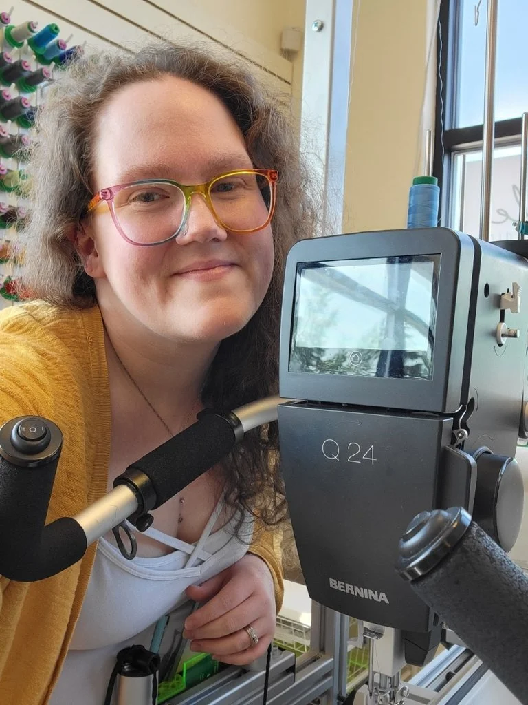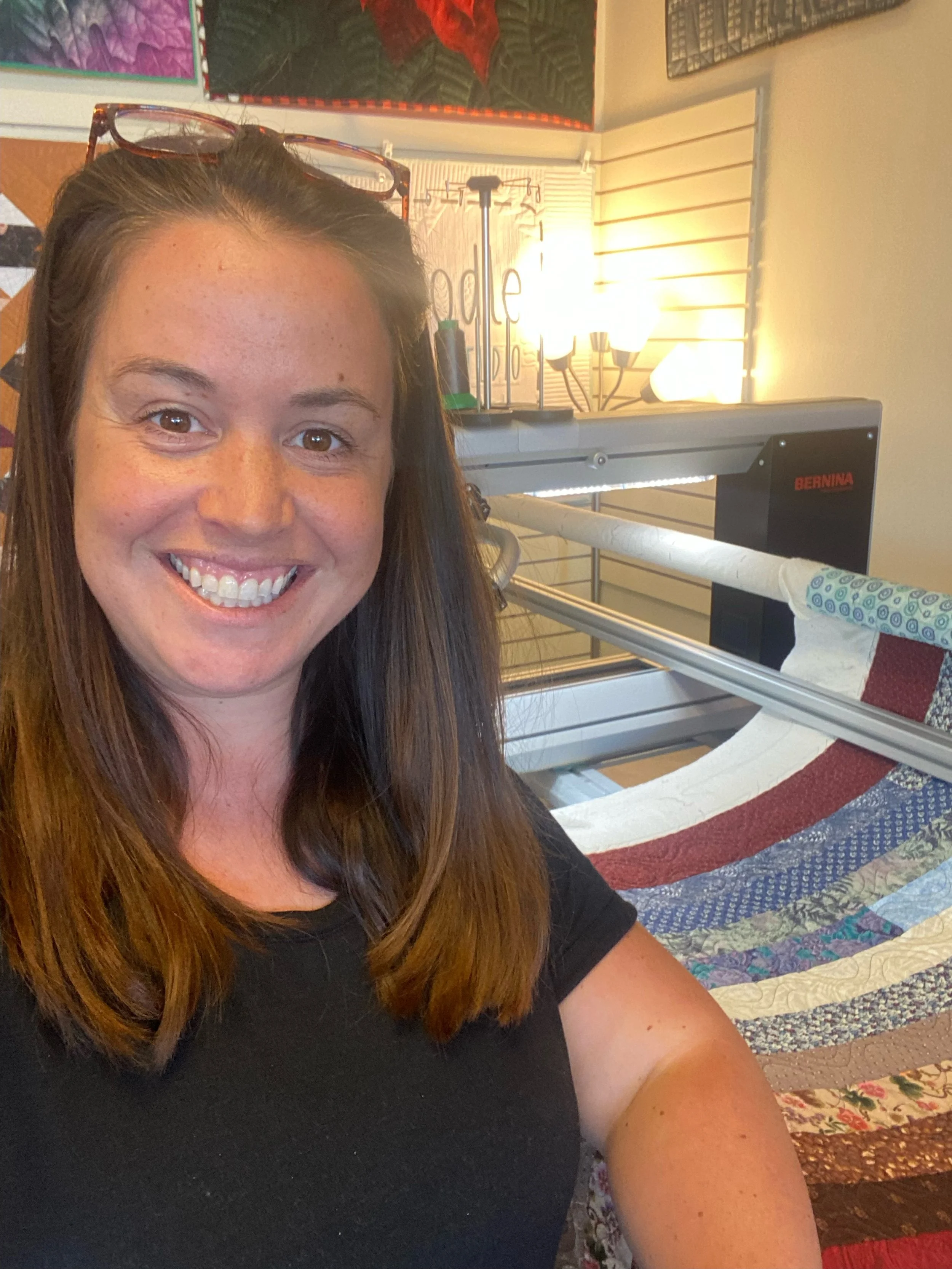 She has been sewing since she was a child, but quilts weren’t on her radar until around 2013. Then when she saw what longarms are capable of around 2016 and realized all the doodling she got in trouble for doing in school was just preemptive practice for this new hobby, it stuck! She’s very dedicated to procrastinating finishing her own quilts but loves seeing all the client quilts and is always just as excited to see your project finished as you are!